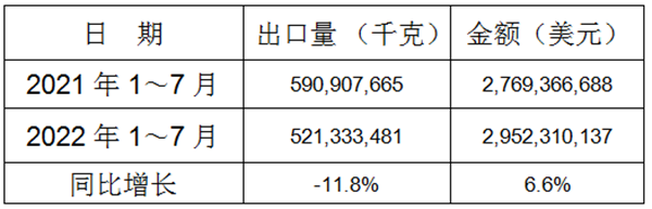 根据海关数据统计,2022年1-7月我国铸件出口总体保持增长,其中: