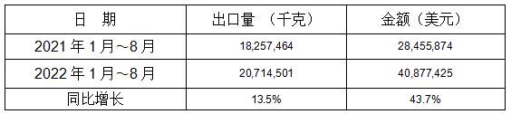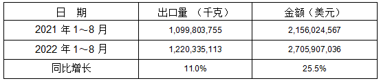 表 11:2022年1-8月同比出口情况