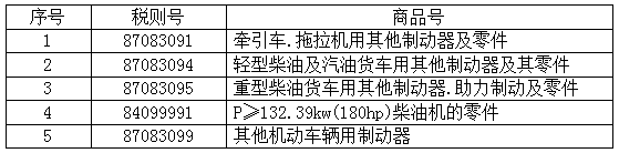 表 4:5个税则号汽车零部件